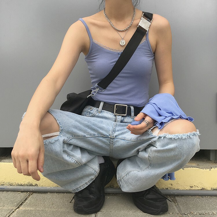 金屬勾環,單釦式粗繩鏈條,與素面上衣一起搭配提升造型重點。