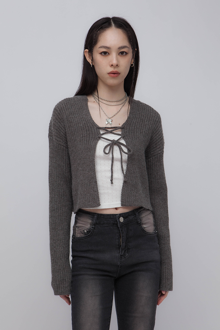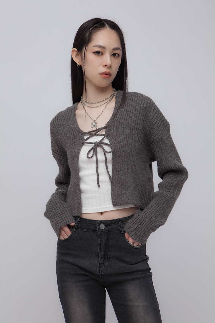 綁繩針織開襟衫,落肩袖,羅紋針織,柔軟觸感不刺膚 ,適合輕鬆疊穿,為你的日常穿搭增添細節。