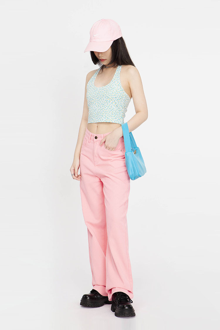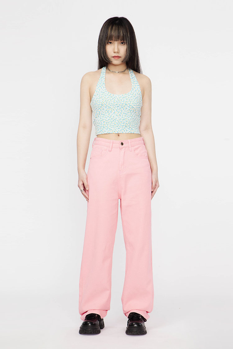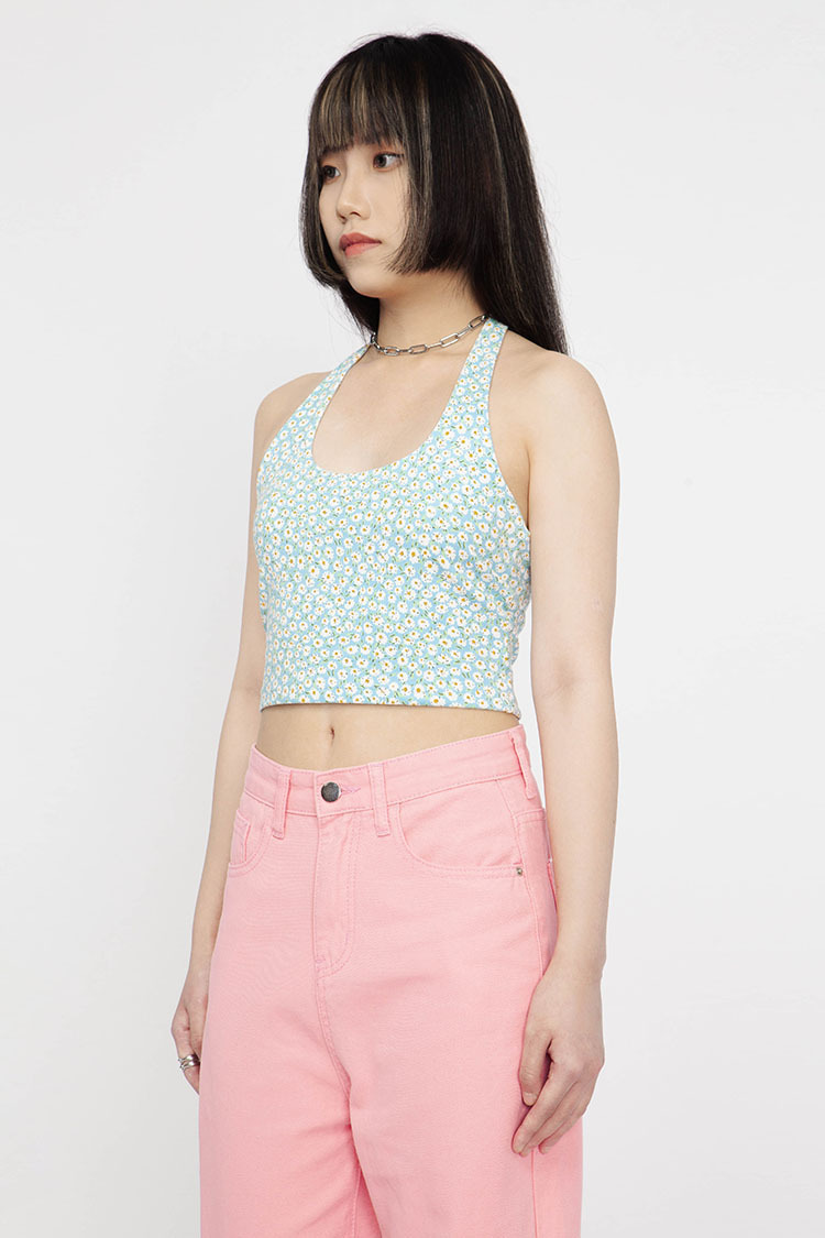 花卉繞頸背心,無袖,合身剪裁,短版,好的彈性,沒有附胸墊,可愛的上衣,享受夏天樂趣。