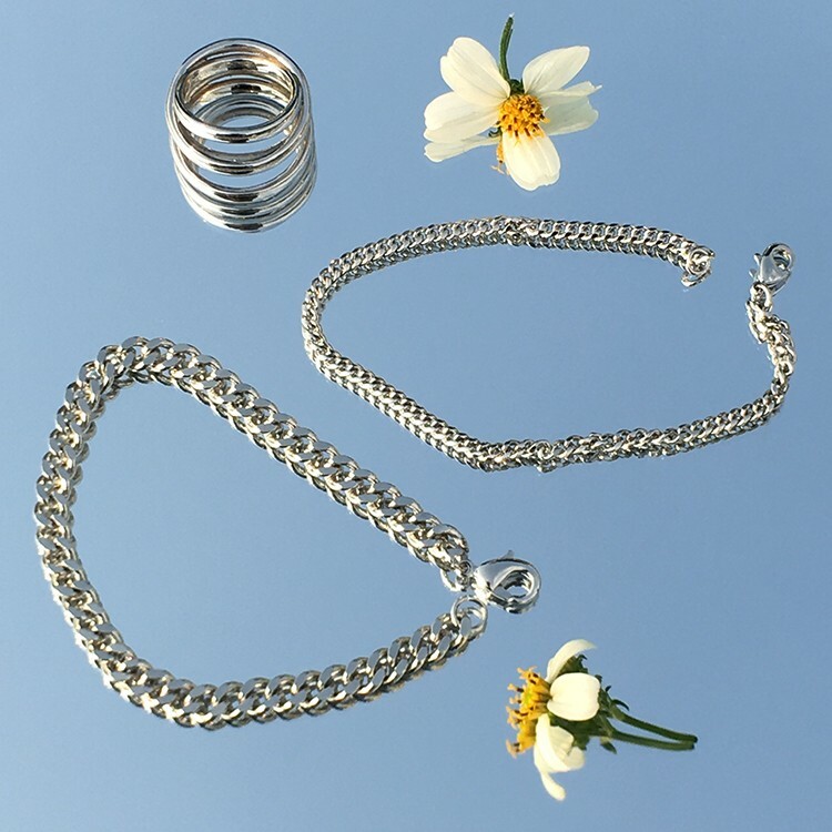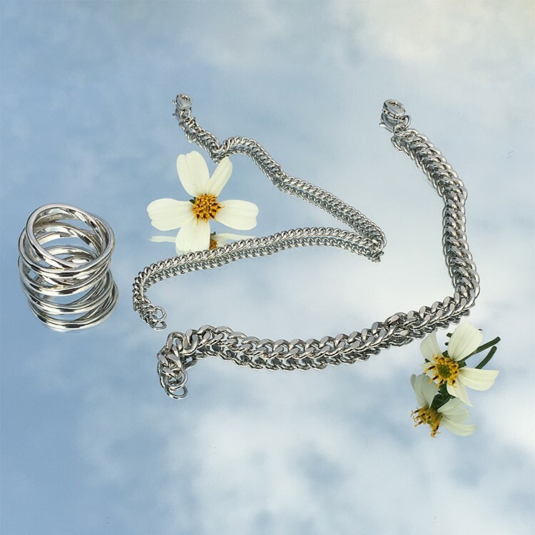 鎖鏈式鏈條,金屬勾環,由兩條金屬鏈條組成,一起搭配更有整體感。