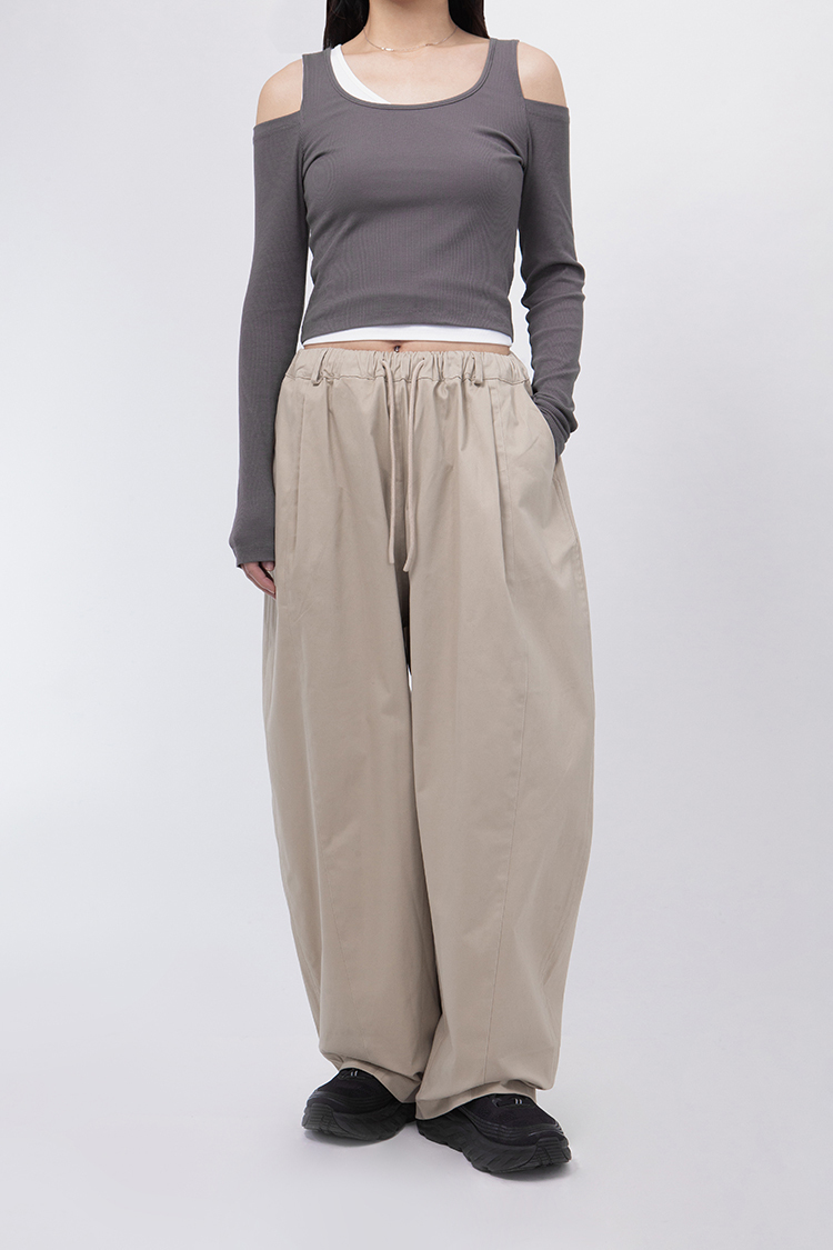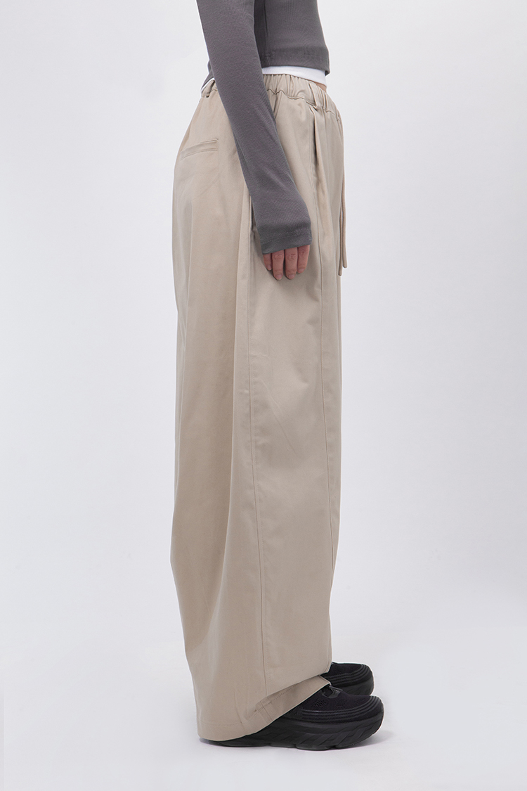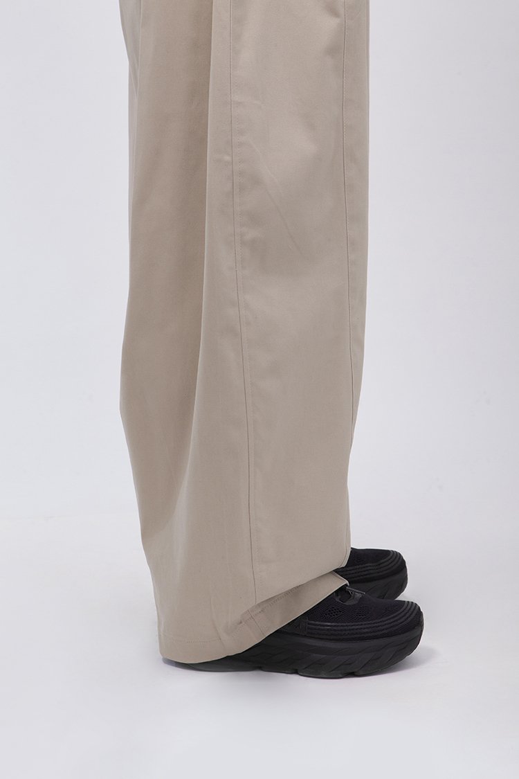 高腰鬆緊寬管褲,弧形輪廓,鬆緊褲頭與皮帶環、繫繩設計,上部打褶前壓線,兩側斜插口袋,穿著舒適自在,精緻的磨毛觸感,讓你在任何場合都能享有輕鬆、慵懶感。