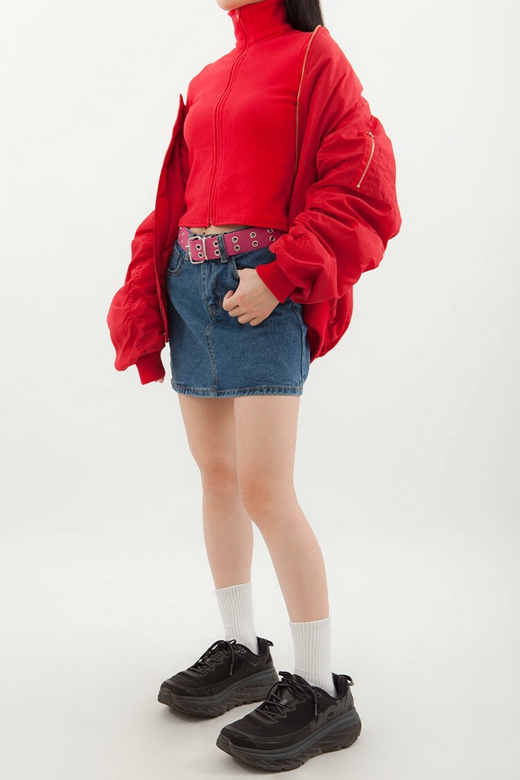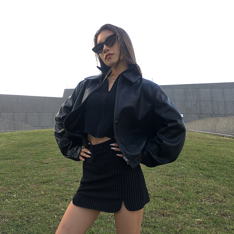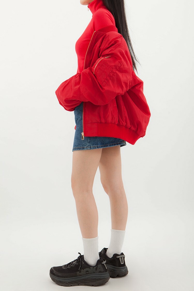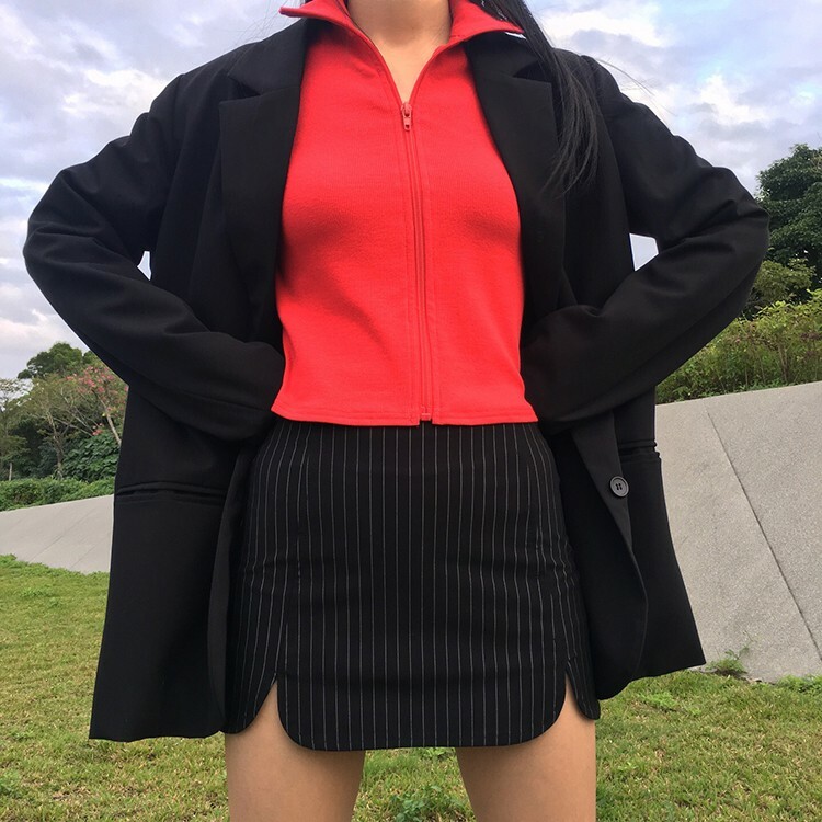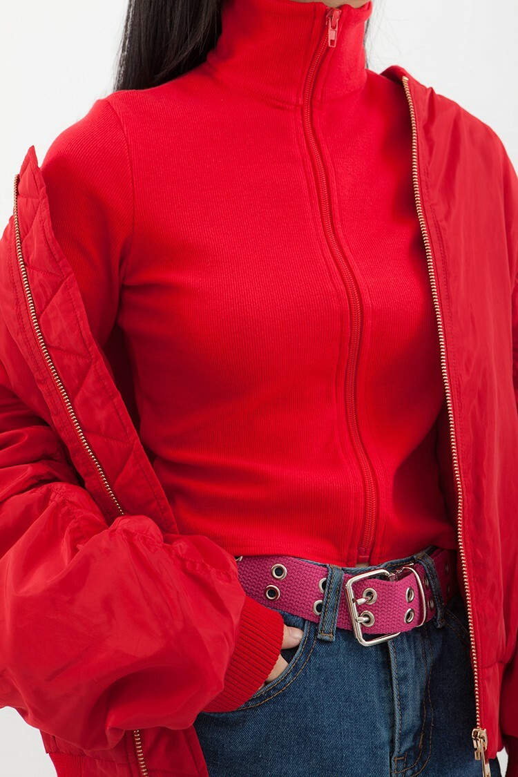 高領長袖外套,合身版型,彈性羅紋布料,材質很薄貼身舒服,非常好搭配,日常的實穿款式。